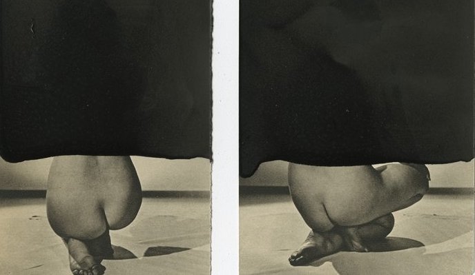 Meszaros reclaims the female body, putting her in charge of her own fate by stripping her sex-slave identity, as the black veil of pigment covers most of her body from the male gaze, replacing the impulse of male violence with female strength and ferocity.