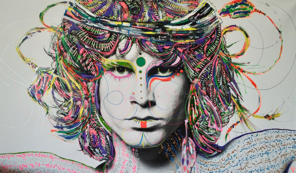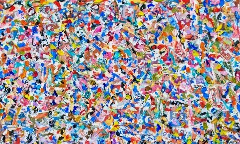 the viewer is instantly hit with an overwhelming sense of madness. Wild colors and editorial photographs capture your gaze while you stand still in the midst of this artist’s deliberate chaos.